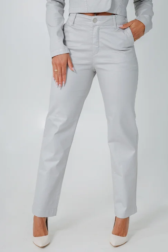 A Calça Feminina Jeans Cigarrete Metalizada transborda beleza e autenticidade. O tecido brilhante traz um conceito único, totalmente diferente dos tradicionais, perfeita para um momento super especial. Comprar essa calça metalizada, super moderna, é ter em seu guarda-roupa um item realmente exclusivo, com detalhes diferenciados e um design feito para você arrasar!