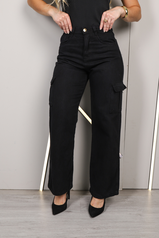 Calça Jeans Wide Leg Cargo