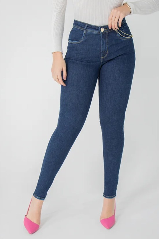 Um detalhe funcional que valoriza o acabamento e o visual jeans premium.
