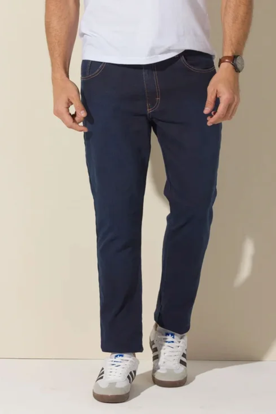 A Calça Masculina Jeans Trabalho Tex Denim entrega um visual alinhado para homens que priorizam estilo e praticidade. Em tom azul escuro sofisticado, reforça uma imagem moderna e segura. Um jeans masculino ideal para compor produções atuais com personalidade.
