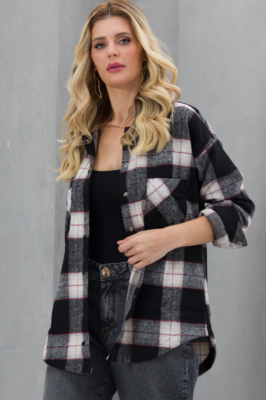 A estampa xadrez dessa camisa é atemporal e permite diversas combinações ao longo da sua rotina, desde looks casuais com jeans e tênis, até composições mais elaboradas com calças sociais e salto alto. Você pode usá-la aberta sobre uma camiseta básica, amarrada na cintura para um toque mais fashion ou fechada para um visual mais formal e aquecido.