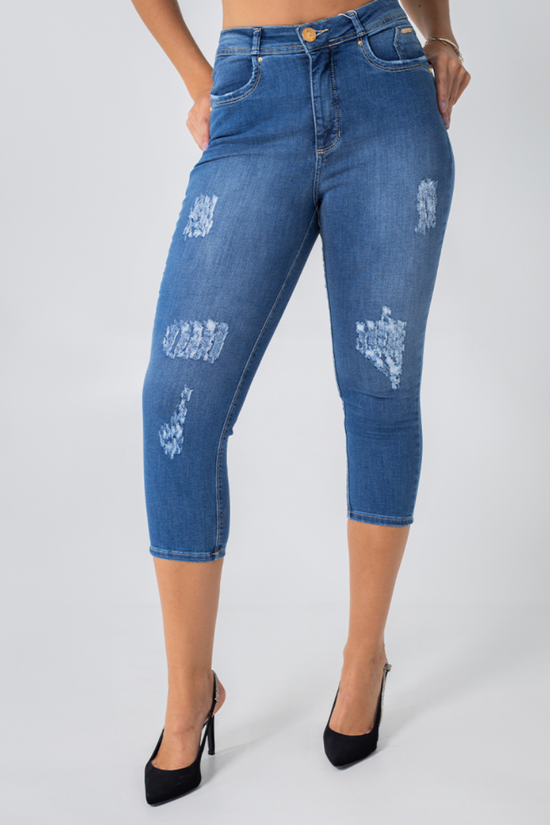 A Calça Capri Feminina Juliana Safira chega como escolha certa para comprar com preço baixo e qualidade. Em azul, combina com looks do dia a dia e realça o visual com efeito destroyed moderno. Ideal para quem busca produto bom e barato, de marca e com tecido bom. No site você encontra promoção e condições para levar a sua calça capri azul com segurança.