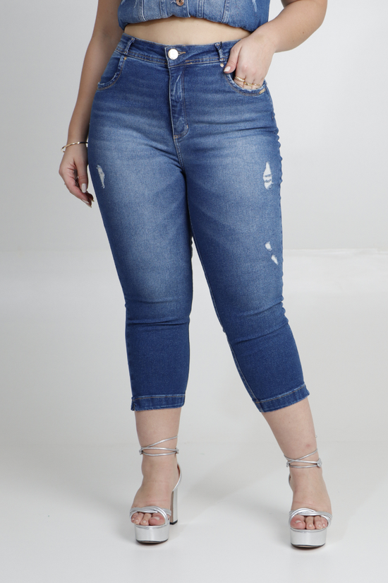 Produzida em jeans encorpado e macio, proporciona sensação agradável ao vestir. O caimento acompanha o corpo com equilíbrio, oferecendo segurança e conforto prolongado. A modelagem capri traz leveza ao look e favorece a silhueta de forma natural. Ideal para o dia a dia com bem-estar.