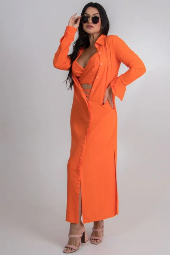 O conjunto feminino composto por vestido de manga longa e cropped traz um visual moderno e envolvente. Pensado para mulheres que valorizam estilo e personalidade, ele une tendência e conforto em uma única proposta. Ideal para quem busca um look feminino marcante, com informação de moda atual e toque sofisticado.
